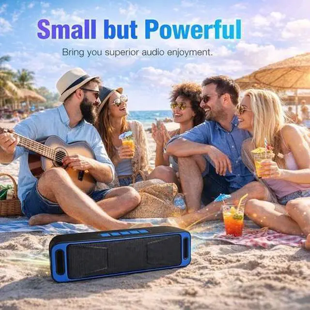 For the fully sealed design of the device, the Bluetooth water resistant speaker can endure water splashes and other spills. This waterproof speaker have IPX5 certification for fearless outdoor entertainment. It's resistant to rain, dust, snow, sand, mud and spills, No worries about water, a great Bluetooth speaker for Travel, Home.