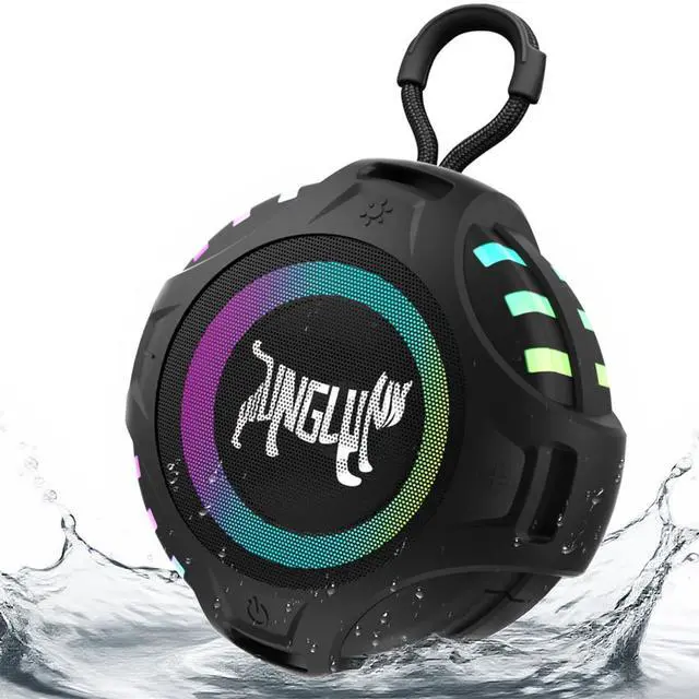 Wireless Bluetooth Speaker, Blue Tooth Portable Speaker with IPX6 Waterproof, 2500mAh Battery, TWS Pairing, RGB Light, Built in Mic, Support TF Card, USB, Unisex Gifts for Bathroom Party Home - Black