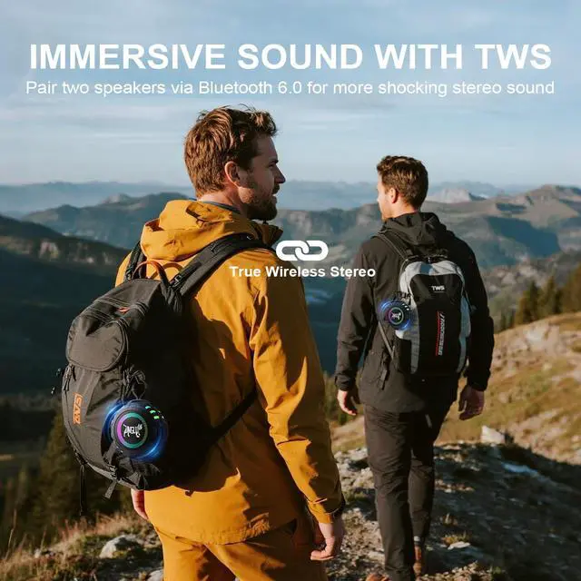 IMMERSIVE SOUND WITH TWS - Support pairing two speakers together through Bluetooth 6.0 connection for richer and more immersive sound, form a wireless left and right channel system to deliver your true stereo sound with 10W RMS (5W+5W). To enable TWS pairing, double click the light effect button on both speakers , then connect one speaker to your smartphone