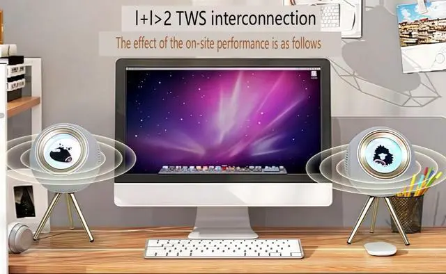 Audio Visualization: The speaker music companion brings your music to life, and its charming display dances and rotates in sync with the rhythm of your tunes, creating a fascinating visual experience.