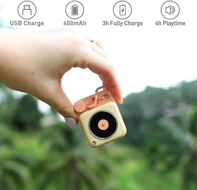 Portable & Retro Design: The MUZEN portable Bluetooth speaker only takes a place of 2.48 x 1.85 x 1.18 inches and it comes with a lanyard, allowing you to carry it all around. The vintage and elegant appearance of this Bluetooth speaker brings you back to the Old Days