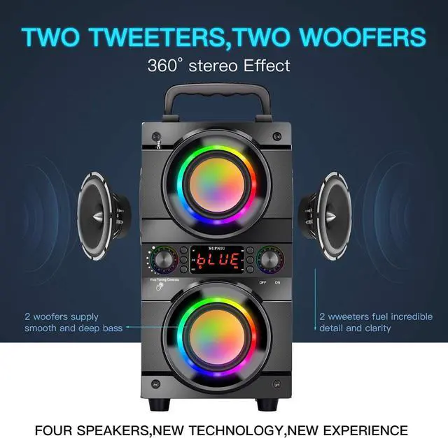 Wireless Party SpeakersPortable Karaoke Machine SUPNIU A21 is equipped with a professional karaoke speaker and microphone playback system. It is recommended to use it with a microphone so that the enthusiastic singing voice can provide the best music atmosphere and effect for your party. Hand-held microphone, you will be the brightest party among the party stars (the product does not include a microphone)