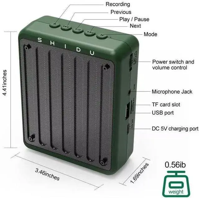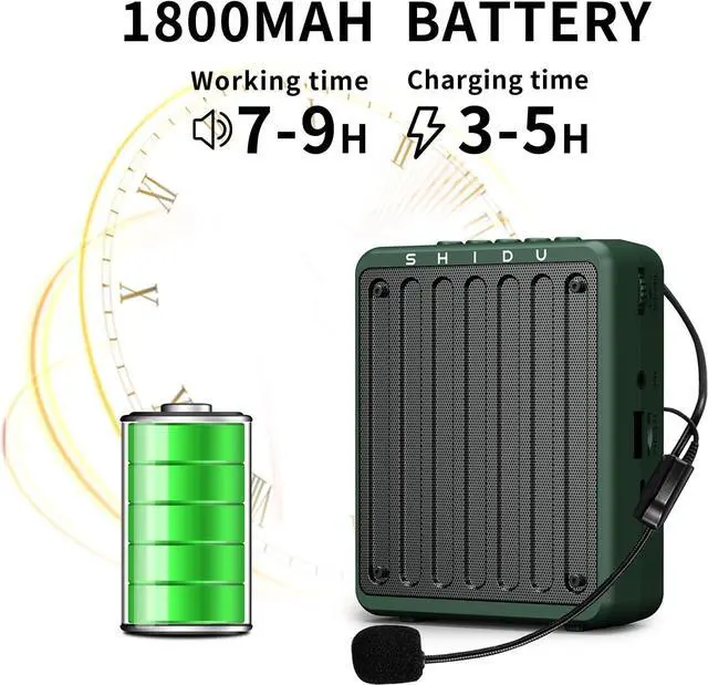 Built-in a rechargeable 1800mAh lithium battery. The long lasting battery life of 6-8 hours ensures that the SHIDU voice amplifier can keep up with your demands throughout the day, and it takes only 3 to 5 hours to fully charge.