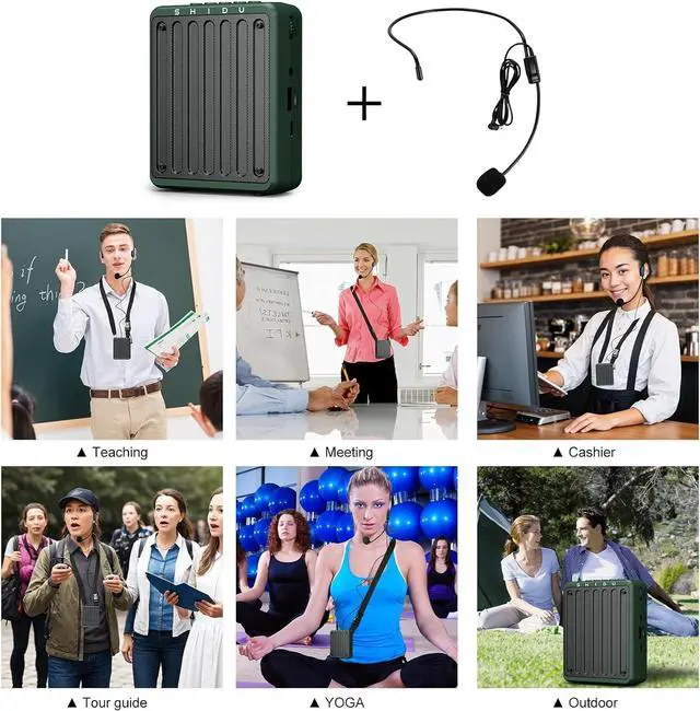 Compact size ( 4.4 x 3.4 x 1.7 inches) and light weight ( 0.56 lb). With wired microphone headset and waistband, easy to carry anywhere. Ideal for teachers, tour guide, training, meeting, coaches, yoga fitness and all outdoor or indoor activities.