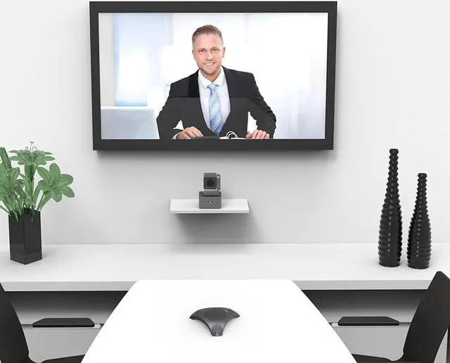 Audio Technology - Digital Signal Processing [DSP] & Automatic Gain Control [AGC] & Acoustic Echo Cancellation [AEC] & Automatic Noise Suppression [ANS]. The conference room microphone and speaker will give you a professional meeting experience.