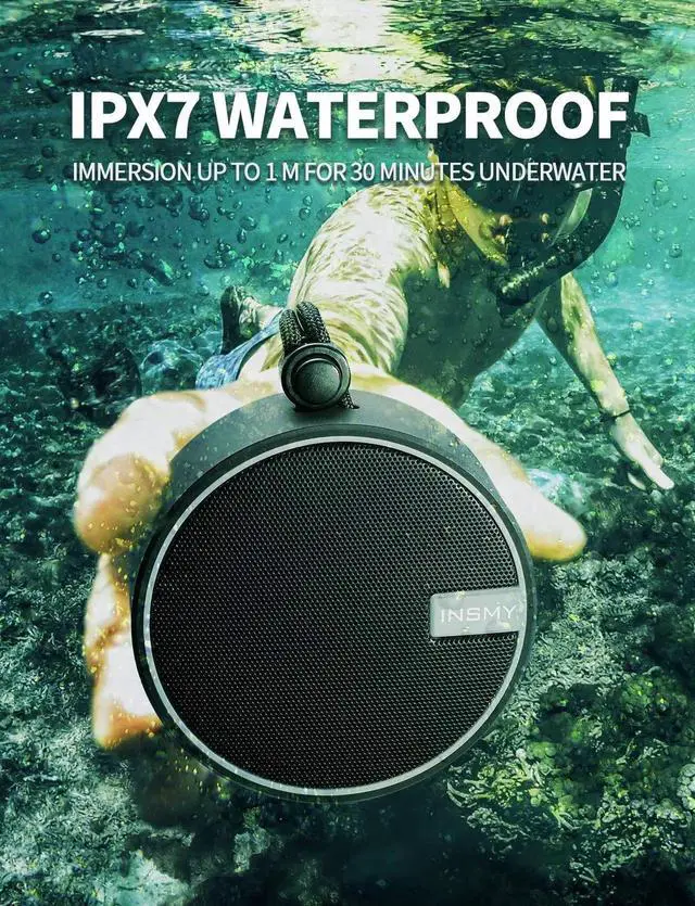 MORE BASS LESS SPACE BIG SOUND This INSMY wireless speaker is built with an active deliver and extra passive radiator in this compact small size, delivering immersive and stereophonic audio for you from the beach to the bathroom. It' s really loud, pure, musical, and dynamic. The small portable speaker impresses with a loud and clear sound performance even under showering noise.