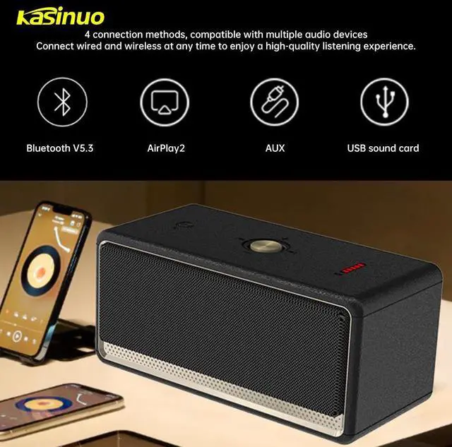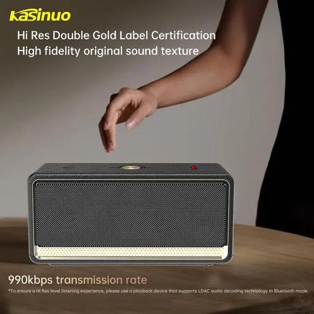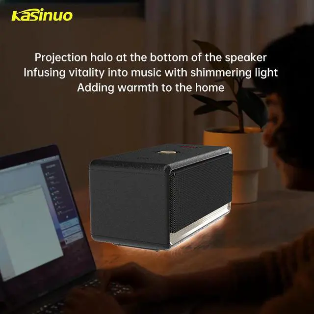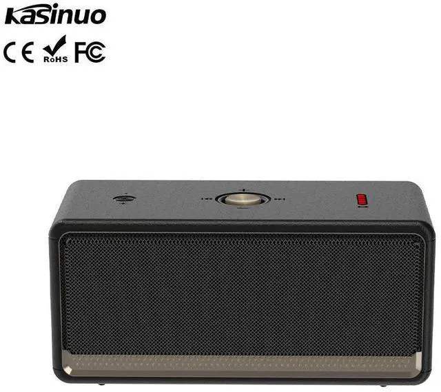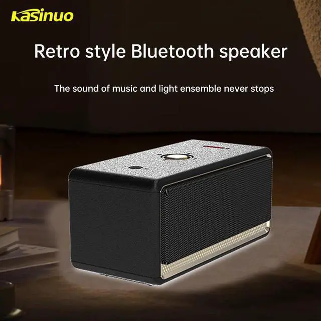 The Kasinuo JH05 is a retro classic vintage portable BT speaker with a sleek design and premium acoustic performance, ideal for home and outdoor use. It features a leather texture finish and RGB LED lighting, blending stylish aesthetics with versatile audio functions.