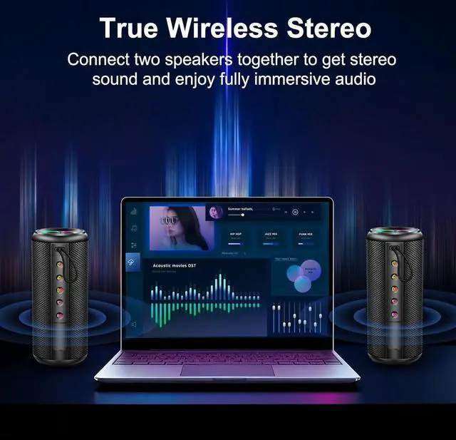 Product Features True Wireless Stereo, Bass Boost, AUX, High-Resolution Audio, 3 EQ Modes, 15 Hours of Playback Time, IPX7 Water Resistant, TF Card Port, 20 Watts of Power, Hands-Free, Shock-Proof, Stereo Pairing