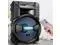 To complement any party, the speaker system is built with a multi-color flashing LED party light.