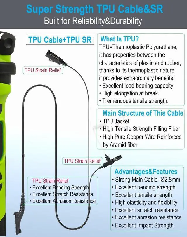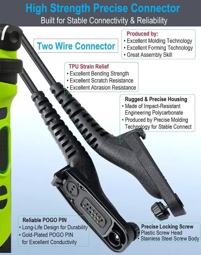 Clear Sound Transmission: With professional acoustic tube module, high quality micro speaker, noise reduction microphone, high purity copper wire cable and anti-Interference circuit design and our great assembly skills, this earpiece ensure sound to be received and transmitted clearly even in loud environment.
