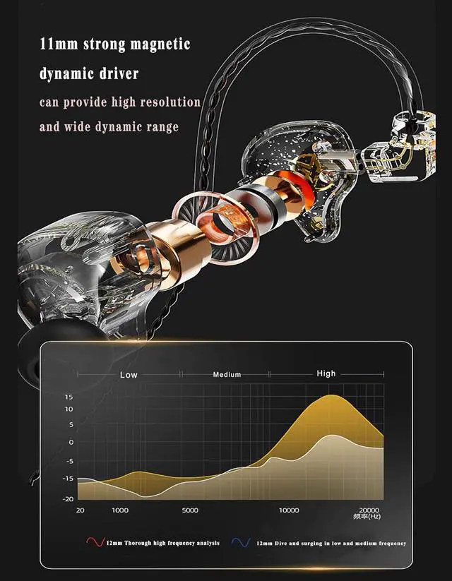 Convenient Detachable 2pin 0.78 mm The Unit owns low impedance and high sensitivity, mobile phones can also be easily pushed directly. 11mm Dynamic Driver makes the low frequency more elastic and textured, professional TPE wire improves sound, which presents a clear sound background. The vocals and instruments are more bright. You also can replace with other cable. Search FEDAI cable, find what you want.