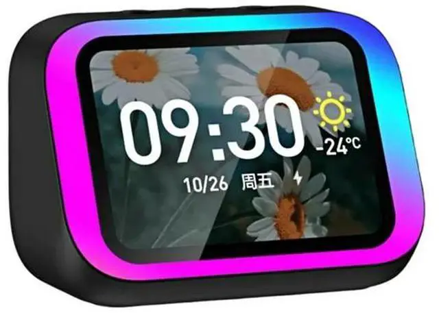 • Intelligent Large Screen Bluetooth Clock Speaker with Temperature Display Control Table Speaker FM Office Decor Black