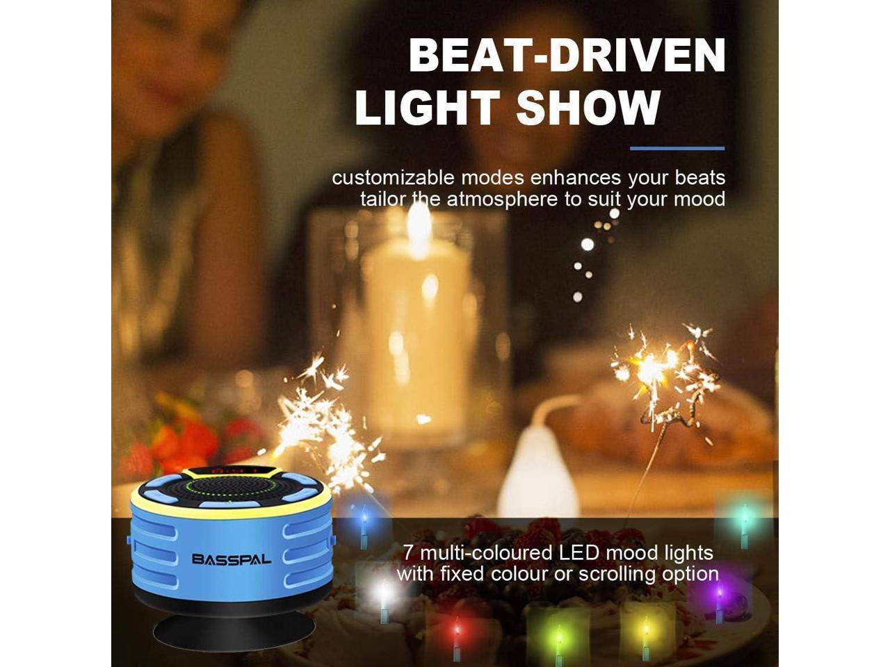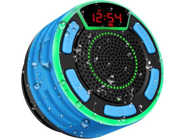IPX7 Waterproof Speaker, Bluetooth Portable Wireless Shower Speakers with LED Display, FM Radio, Suction Cup, Light Show, TWS, Loud Stereo Sound for Pool Beach Home Party Travel Outdoors