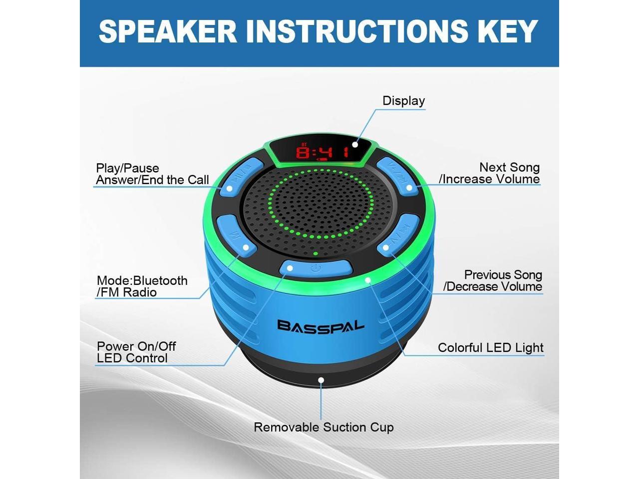 - IPX7 fully waterproof: IPX7 waterproof technology offers impermeable protection, even can be submersed in 3 feet of water up to 30 minutes, the removable suction cup design makes Bluetooth shower speaker can floating on the water or stick to your bathroom wall, mirror, pool deck, kitchen counter or whatever slick surface.