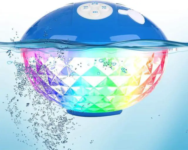 HandsFree Calling: With built in microphone this pool floating speaker, you will not miss any important calls when taking shower, swimming in your pool, thus you no need to take your phone all time; Adopt bluetooth 5.0 technology, this bluetooth pool speaker with lights can easy and fast connect to almost bluetooth devices. Wireless connectivity up to 15 meters, you can enjoy favorite music with ease in any where