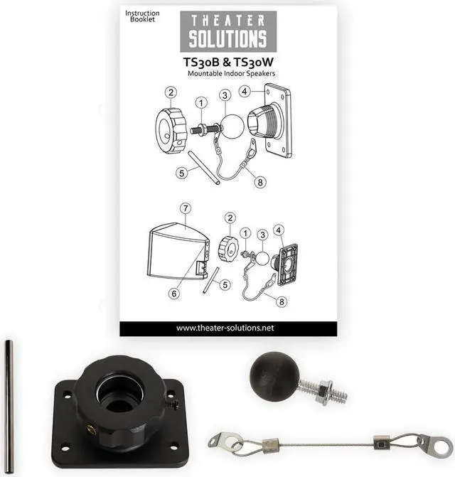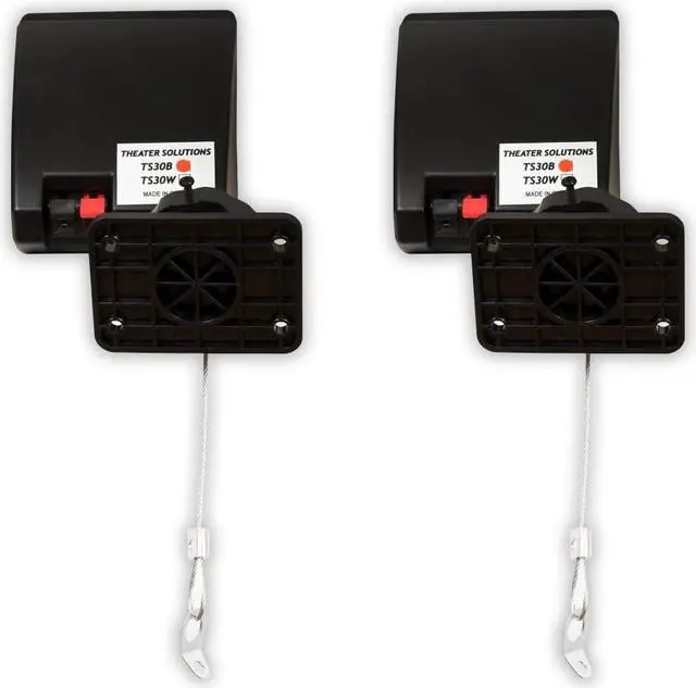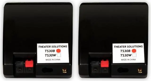 WHAT' S IN THE BOX - 2 Theater Solutions by Goldwood TS30B speakers, mounting brackets with hardware, instruction manual. Use for home theater surround sound, whole house audio systems, business or retail installations, patios, decks, pool and spa settings