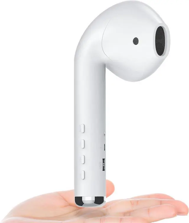 GIANT EARBUD-SHAPED BLUETOOTH SPEAKER: Get a giant Bluetooth speaker with over 30' of pairing range with this Coby speaker. It lets you enjoy low-latency audio and stable connectivity while you listen and includes a charging cable, a 3.5 mm AUX port, a USB-A slot, a TF card input, a built-in mic, and a radio.
