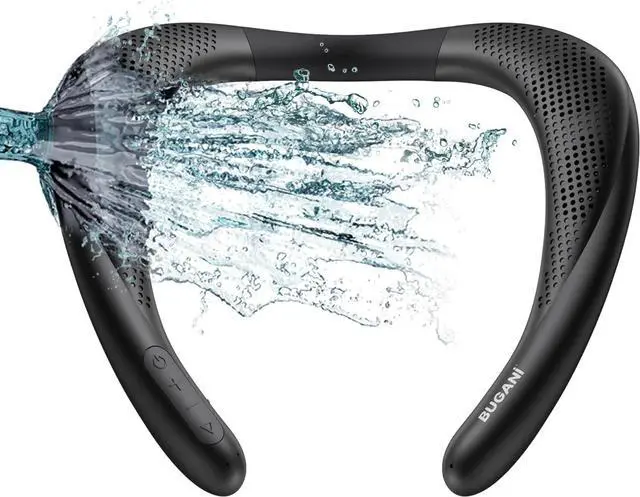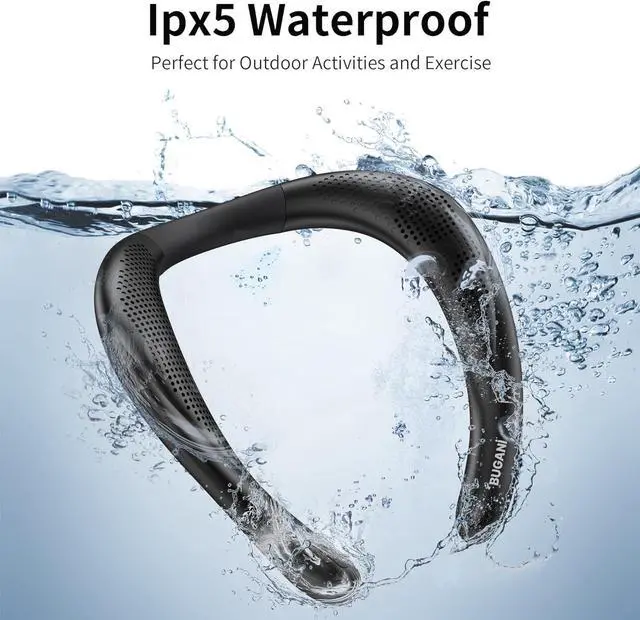 IPX5 Waterproof & Long Battery Life-- This waterproof wearable speaker is sweat and weather-resistant. Suitable for outdoor sports such as walking, riding bicycle, climbing mountains, etc. The neck bluetooth speaker included a premium rechargeable built-in 1000mAh battery that provides up to 24 hours of playtime at 60% volume (12 hours at 100% volume).