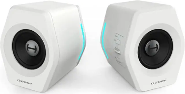 Brilliant RGB Effects12 RGB lighting effects of the bass speakers aim to elevate your gaming experience by dressing your desktop and room into a spectrum style, totally bringing you an unprecedentedly immersive gaming feast.
