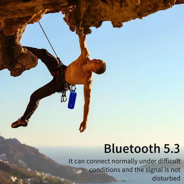 Strong Bluetooth 5.3 signalThe bluetooth speakers portable wireless can connect normally under any difficult conditions and the signal is not disturbed. Antenna design with Bluetooth 5.3 provides greater wireless range 100ft and efficient connection to any Bluetooth devices. The Bluetooth 5.3 chip easily reads music play list. This wireless speaker not only can connect laptop, phone, MP3, iPhone, iPad, but also personal computer, TV or other non-Bluetooth device with 3.5 mm audio jacks. The bluetooth speakers can be as gifts for men, women, friends or kids