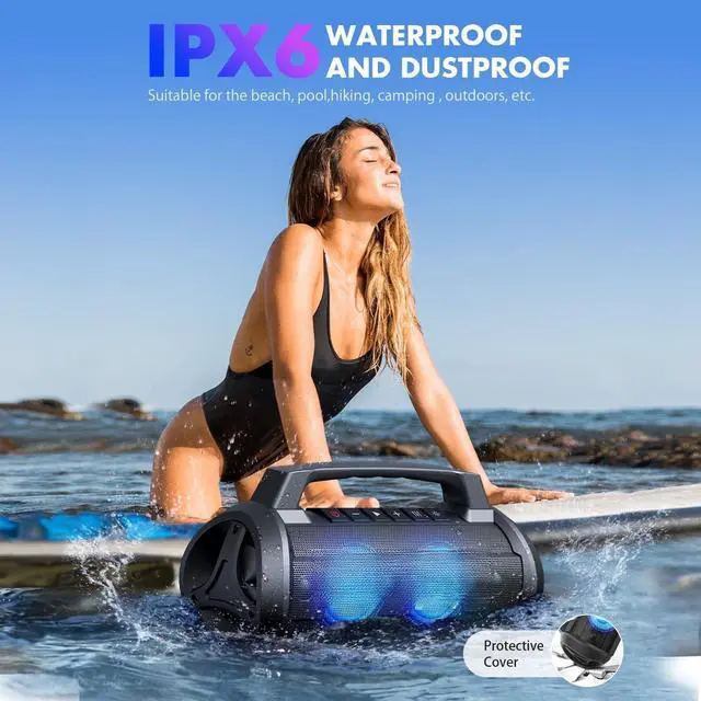 HI-FI AUDIO & Powerful Bass: Built-in DSP Chip enhances crystal clear, well-balanced sound to ensure zero distortions, even at loudest volumes. 2 Large Powerful Passive Radiators in the portable speaker allow for more air movement, resulting deeper bass and more expansive sound and eliminate the potential for port noise, resulting in cleaner sound reproduction. Whether you're lounging in the backyard, grilling with friends, enjoying camping, the loud speaker fills the space with robust sound