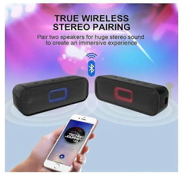 \n **Dual Stereo Pairing**: Connect two speakers wirelessly for immersive left-right channel stereo, perfect for parties, movies, and outdoor adventures.