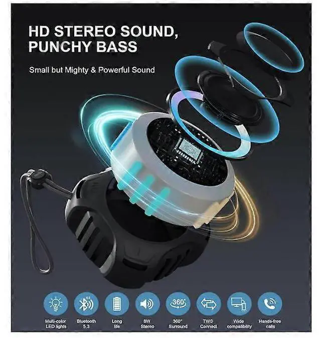 - **Bluetooth 5.3 & TWS Function**: Low-power, fast connectivity for seamless pairing; link two speakers for 360° stereo sound and doubled volume.