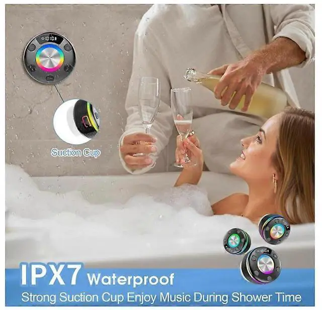 - **IPX7 Waterproof & Secure Suction Cup**: Fully waterproof for worry-free use in rain, showers, or by the pool; includes a strong suction cup to stick firmly on smooth surfaces like tiles or glass.