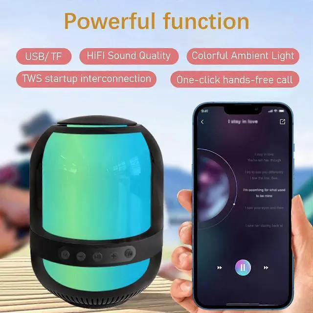 Elevate your audio experience with this portable Bluetooth speaker, featuring dynamic RGB lighting and powerful sound for any occasion.
