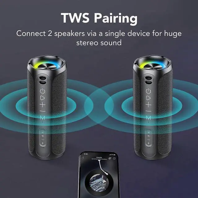 - **Double Pairing Function**: Connect two speakers for enhanced stereo sound, amplifying your gatherings and outdoor adventures.