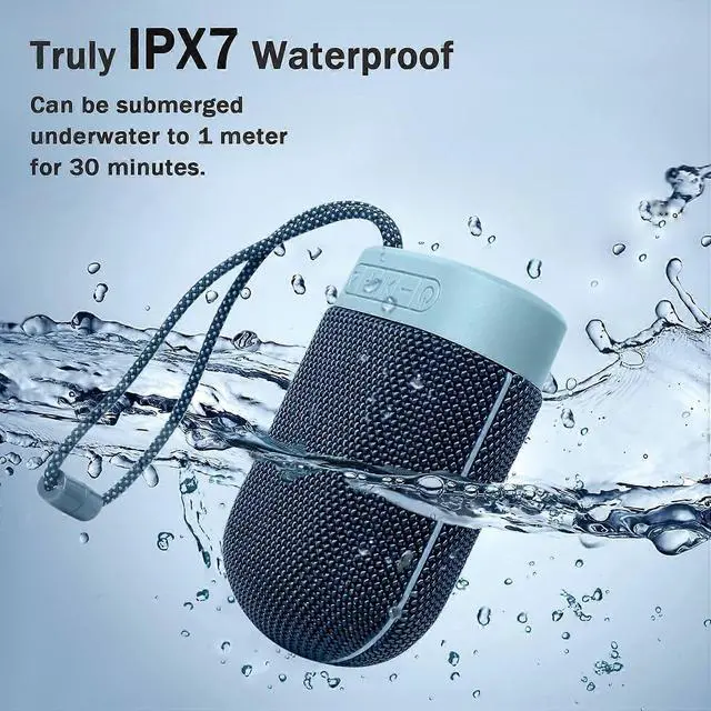IPX7 waterproof and dustproof rating, submersible up to 1 meter for 30 minutes and floats on waterideal for beach, pool, or shower
