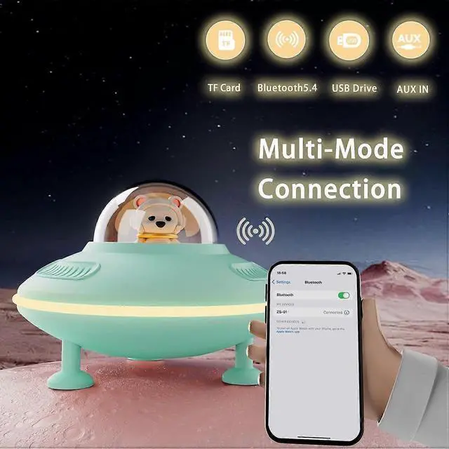 Long-lasting 1200mAh battery provides up to 10 hours music playtime and 20 hours night light use