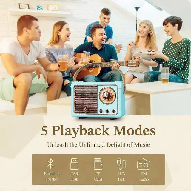 Step into nostalgia with this portable retro Bluetooth speaker, blending vintage charm with modern functionality. Perfect for home, travel, or outdoor use, it delivers rich sound and versatile connectivity.