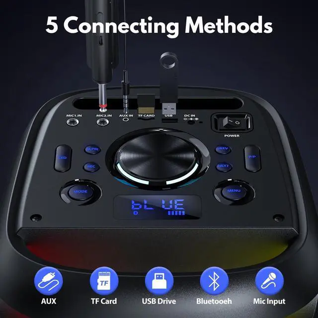 • Versatile Connectivity: Supports Bluetooth, USB, TF card, and AUX-in for flexible music playback from various devices.