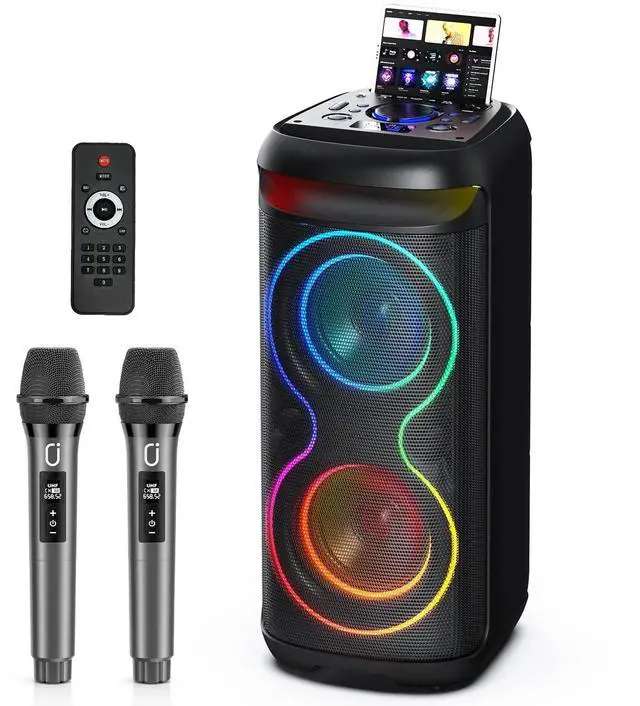 JYX Big Bluetooth Speaker, Large Party Speaker with 2 Wireless Microphones, DJ Lights, Portable Outdoor Speaker with Karaoke Speaker PA System, T20-T