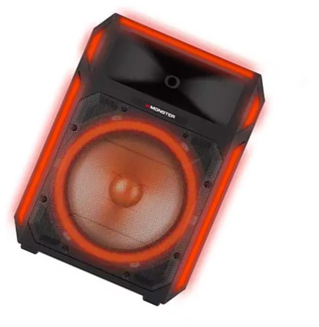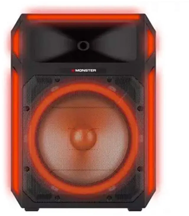 Bring powerful sound and ultimate versatility to any event with this 600W all-in-one PA Bluetooth speaker system. Featuring Bluetooth connectivity, RGB LED lights, and an all-terrain design, it is perfect for parties, karaoke nights, and public announcements. The system includes a height-adjustable tripod and supports up to four microphone connections (2 x 1/4" and 2 x XLR) for live performances. Easily control gain, echo, bass, treble, and volume using the built-in knobs or the Monster Zone Control App. Additional inputs include AUX, USB MP3 playback, FM radio, and TWS pairing for seamless music streaming. Refurbished to like-new condition and sanitized to meet manufacturer quality standards, this speaker is designed for both indoor and outdoor entertainment.