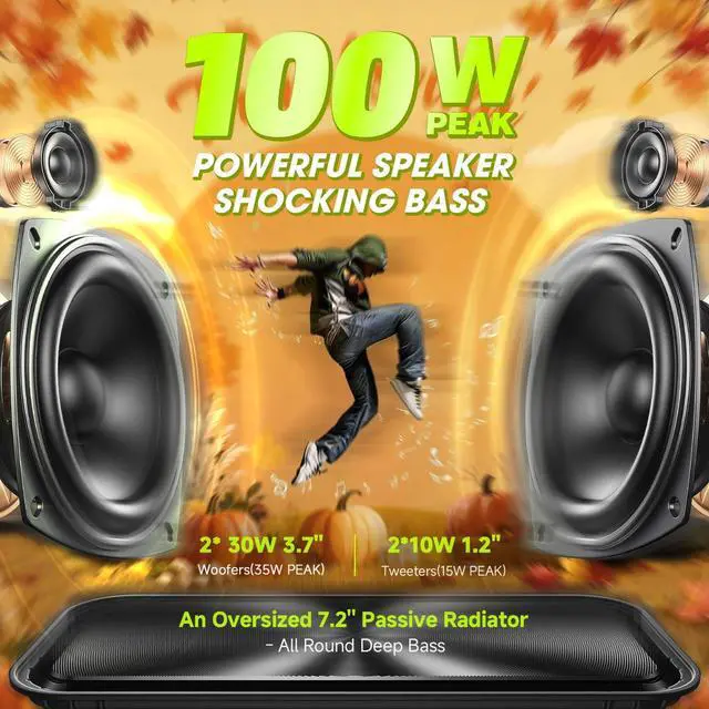 BODY-SHAKING BASS UP & EXPLOSIVE 100W PEAK HD OUTPUT: Thanks to W-KING 60W D9-1 super large 7.2 ' ' passive radiator: all round clear surround stereo sound, With its 2*35W PEAK Subwoofer, 2*15W PEAK tweeters and W-KING DSP technology to add depth and resonance to your favorite tracks, this large outdoor speakers will provide the strongest bass that resounds clearly in any environment. Whether you like music or movies, you can enjoy unparalleled clarity and depth at any volume without distortion.