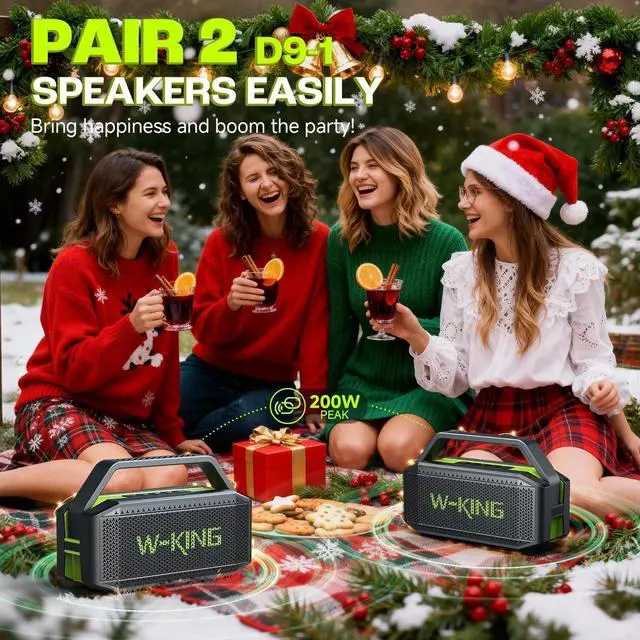 120W PAIRING POWERFUL STEREO & BLUETOOTH 5.0: Pair two D9-1 bluetooth speakers portable wireless to instantly get 120W super stereo surround sound, whether you' re at a party, watching a movie or at an outdoor, D9-1 Loud bluetooth speaker brings you a strong sound quality shock and an unprecedented listening experience. Bluetooth 5.0 enables a stable connection up to 100ft, so you won' t miss a happy moment while playing music or making a
