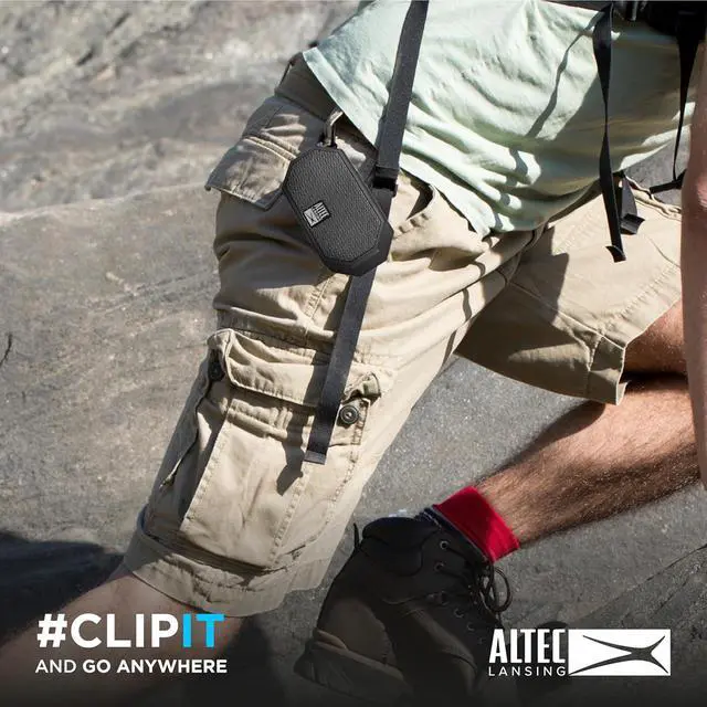 • READY FOR TRAVEL: Thanks to the lightweight and sturdy build coupled with the compact design, you can easily carry this outdoor bluetooth speaker with you anywhere you go. Its designed with a carabiner clip so you can play music while keeping keep your hands empty when traveling.