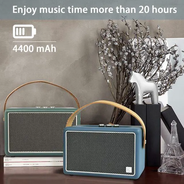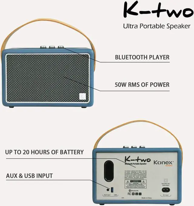 RETRO STYLED BLUETOOTH SPEAKERKonex retro styled bluetooth speaker with rotary knob which blends modern technology and retro classic aesthetics, which matches seamlessly with the texture of your leather furniture around your house.