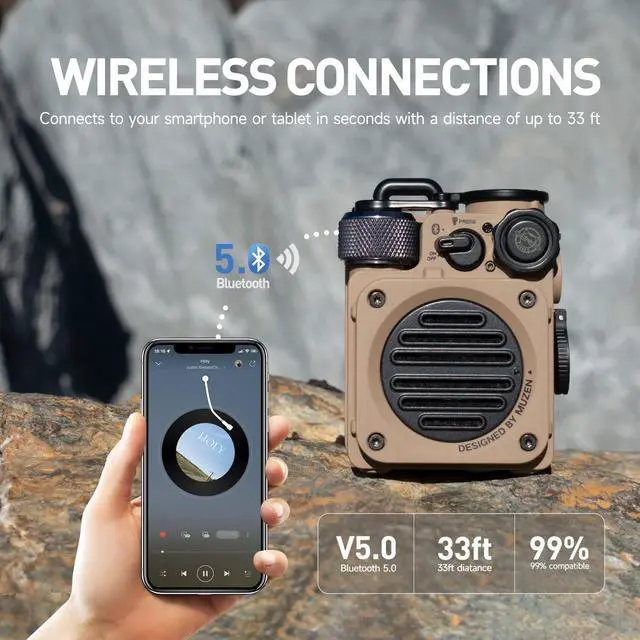What You Get 1 Muzen Wild Mini Rugged Bluetooth speaker(MW-PVXI), 1 charging cable, 1 gift box, 1 instruction manual. We are confident that you will fall in love with this rugged waterproof bluetooth speaker, this small portable bluetooth speaker will be a perfect gift and decorations for Birthday, Christmas, Halloween, and Party