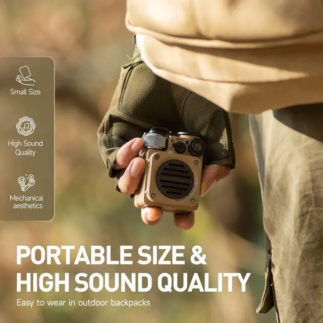 Ultra-Portable & Sturdy StructureThe Wild Mini Outdoor speaker comes with rugged durability, wireless small bluetooth speaker with built-in 1000mAh lithium battery for up to 8 hours. This stereo travel waterproof speaker is designed to be comfortably carried with no square edges, so much better for travel, hiking, super light and easy to fit in or attach to your bag or backpack