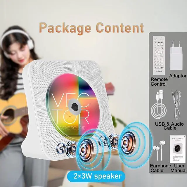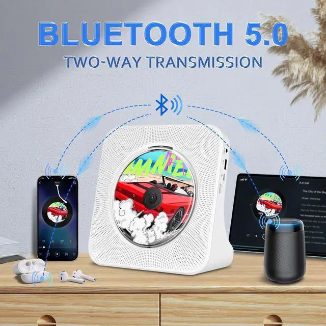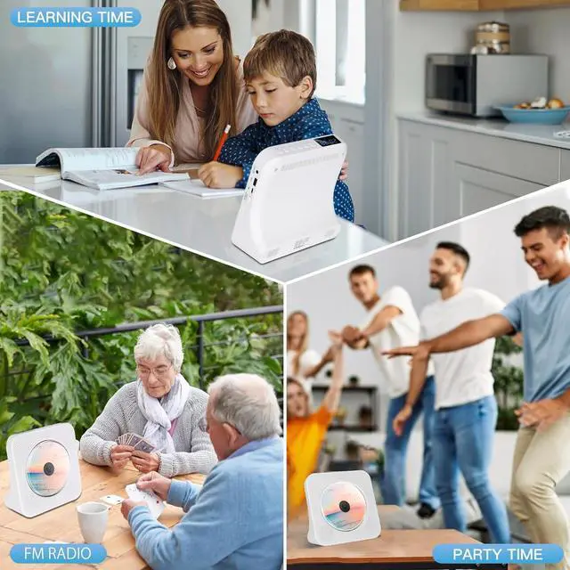[Practicality & Compatibility] When you have this CD player for car, you have FM radio, dual-speaker home stereo and timer at the same time. When you practice yoga or other indoor exercises, you can play the CD songs you want through the CD player' s built-in USB jack or Bluetooth connection.