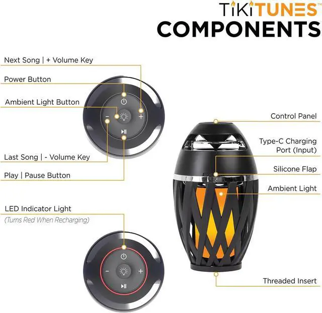 WIRELESS SPEAKER: Provides dual sync capabilities that allow the user to connect up to two TikiTunes from a maximum distance of 30 feet for a true stereo-sound.