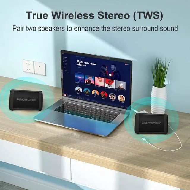 STABLE SEAMLESS CONNECTION - Bluetooth 5.0 ensures instant connection and skip-free music streaming. Enhance the experience by pairing two speakers (TWS) for stereo surround sound.