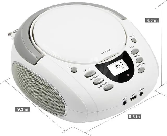 Variety of Audio Modes & earphones OutputSupport FM radio/ USB / AUX-IN input, A key switch, easy to use. Support headphone jack output from CD player, enjoy your favorite song in private, will not disturb other people.