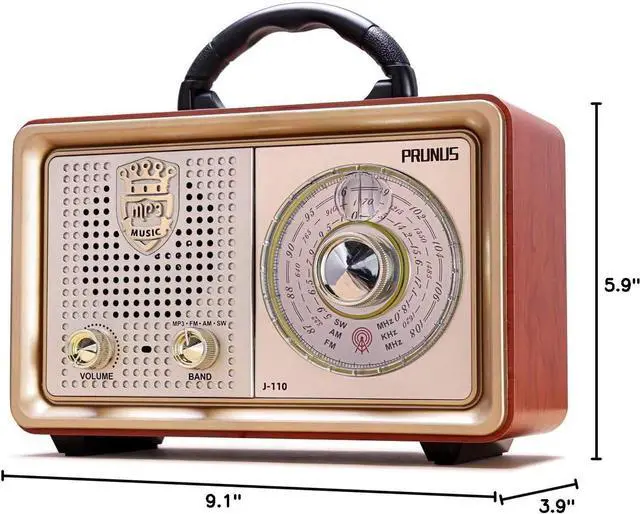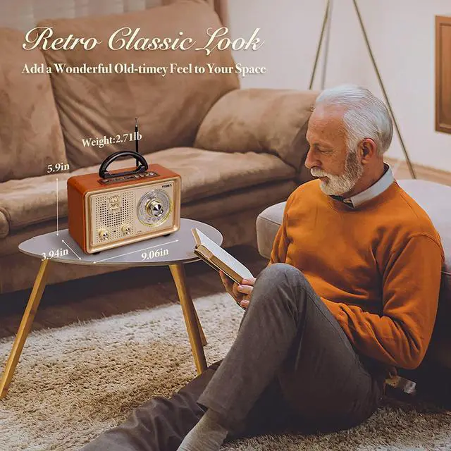 Nostalgic Look and Easy to UseWeighs only 2.7 lb and measures 9.1 * 3.9 * 5.9 inch. A simple vintage portable radio with big analog dial with warm glow inside, is more intuitive and pleasing than push-button digital interfaces. No more confusing buttons, its easy to use, just like a radio from a generation ago. And the portable handle included makes it easy to carry, perfect for old folks.