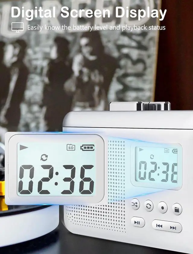 Cassette to MP3 ConverterThis cassette player does not just play tapes. It can also play SD card music. In addition, its built-in highly sensitive microphone can record music directly to the SD card, which can completely act as a recording device. We also know that many precious tapes may be damaged easily, this portable tape player is without other devices or download any Apps, it can be converted cassette music to MP3 stored on the SD card. (Please see the details in the user manual)