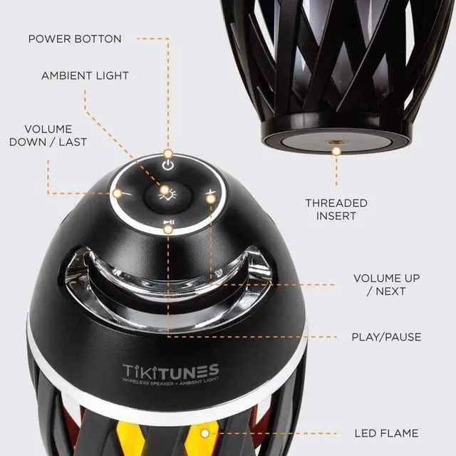 WIRELESS SPEAKER: Provides dual sync capabilities that allow the user to connect up to two TikiTunes from a maximum distance of 30 feet for a true stereo-sound.