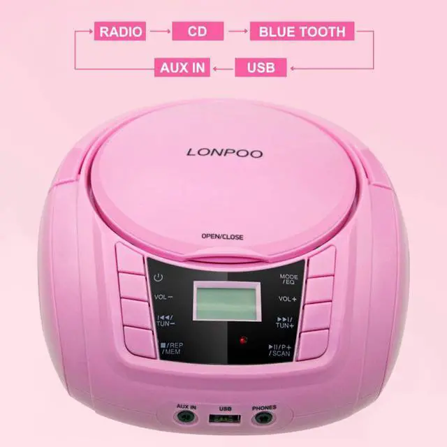 Variety of Audio Modes & earphones OutputSupport FM radio/ USB / AUX-IN input, A key switch, easy to use. Support headphone jack output from CD player, enjoy your favorite song in private, will not disturb other people.